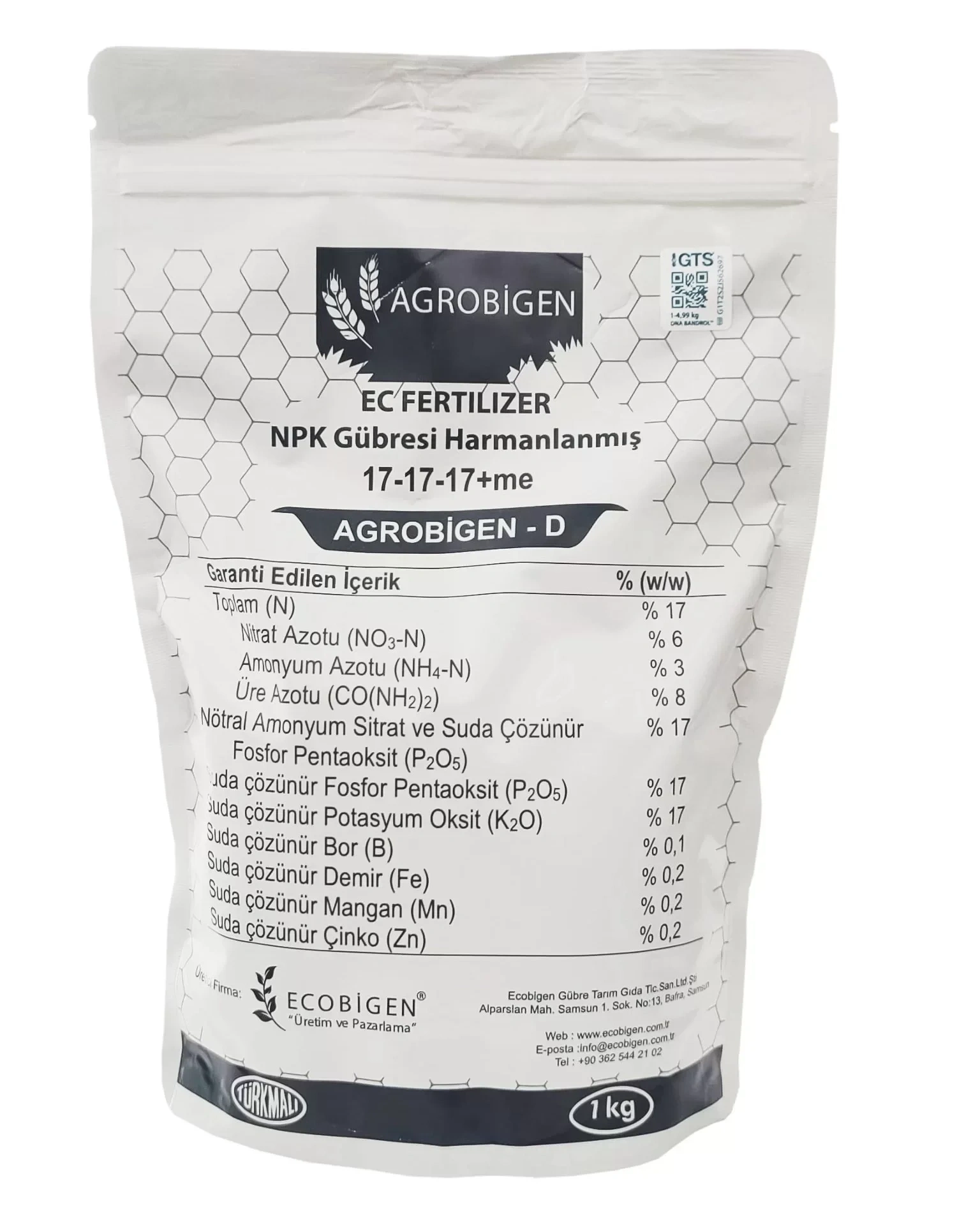 Agrobigen-D Npk Gübresi, hızlı etkisi ve dengeli formülasyonuyla bitkilerinizin ihtiyaç duyduğu tüm besinleri karşılayarak sağlıklı bir büyüme sağlar.