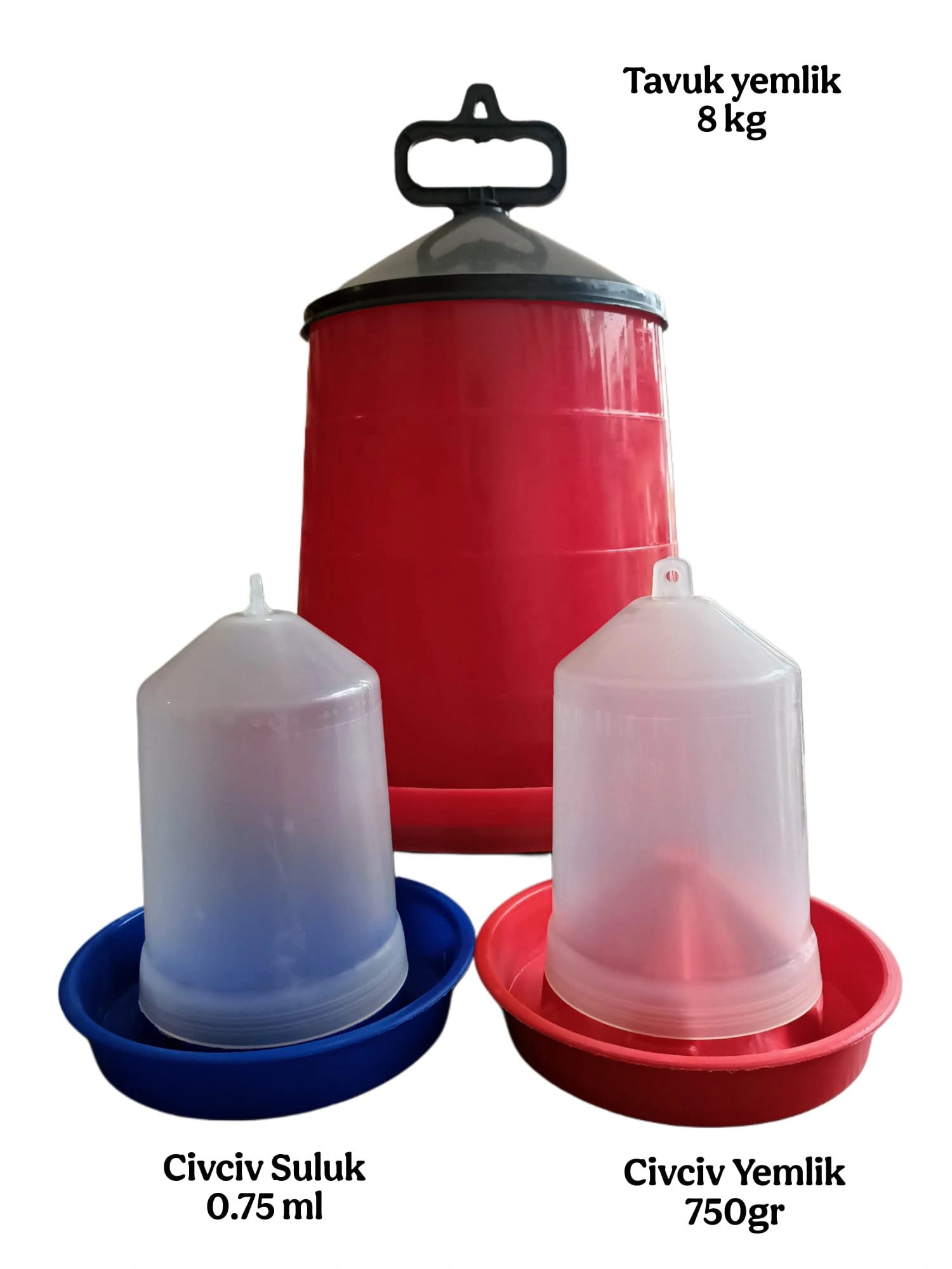 Askılı Tavuk Yemlik 8 kg + Civciv Suluk 0,75 L + Civciv Yemlik 750 g – Ürün Açıklaması