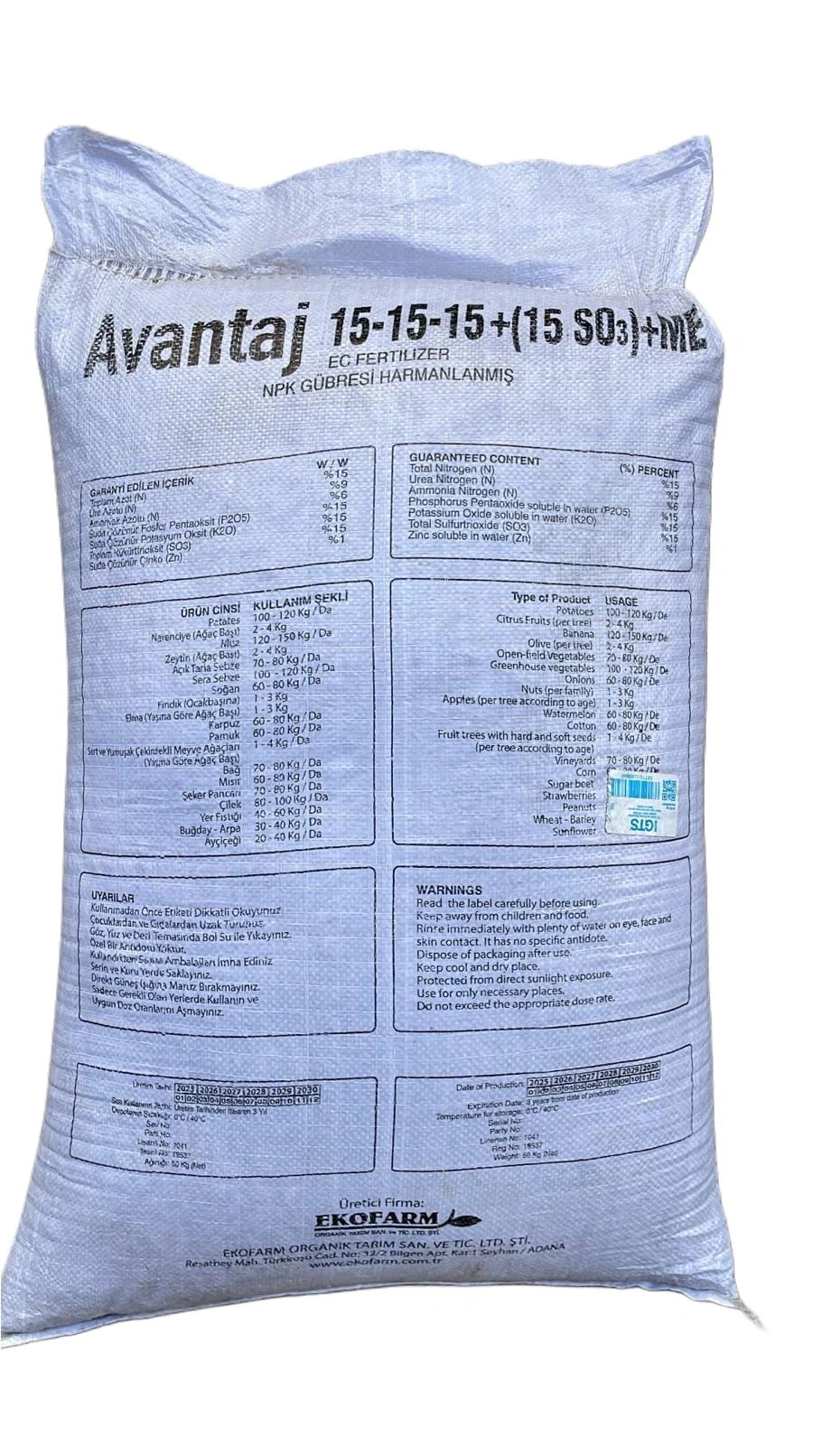 İçeriğinde %15 sülfür trioksit (SO3) ve mikro elementler (ME) bulunur