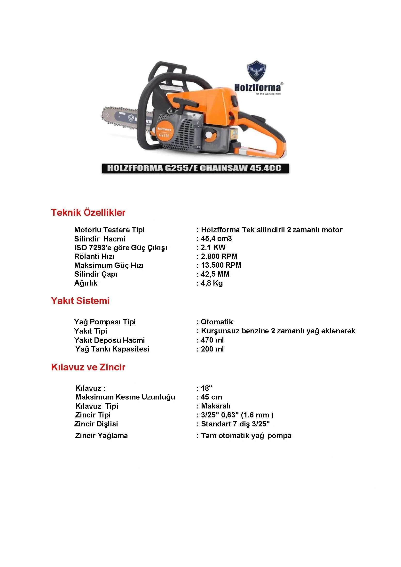 | Zincir Tipi | 3/25" 0,63" ( 1.6 mm ) | |