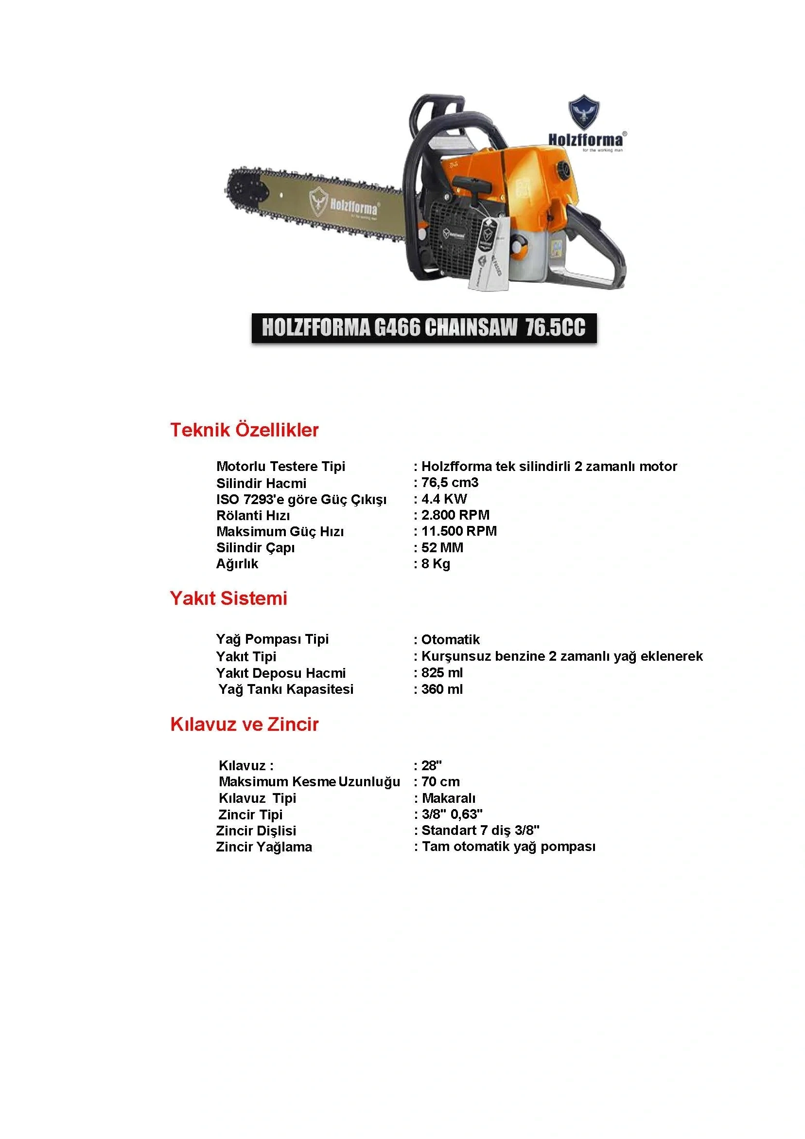 | Yakıt Deposu Hacmi | 825 ml | |