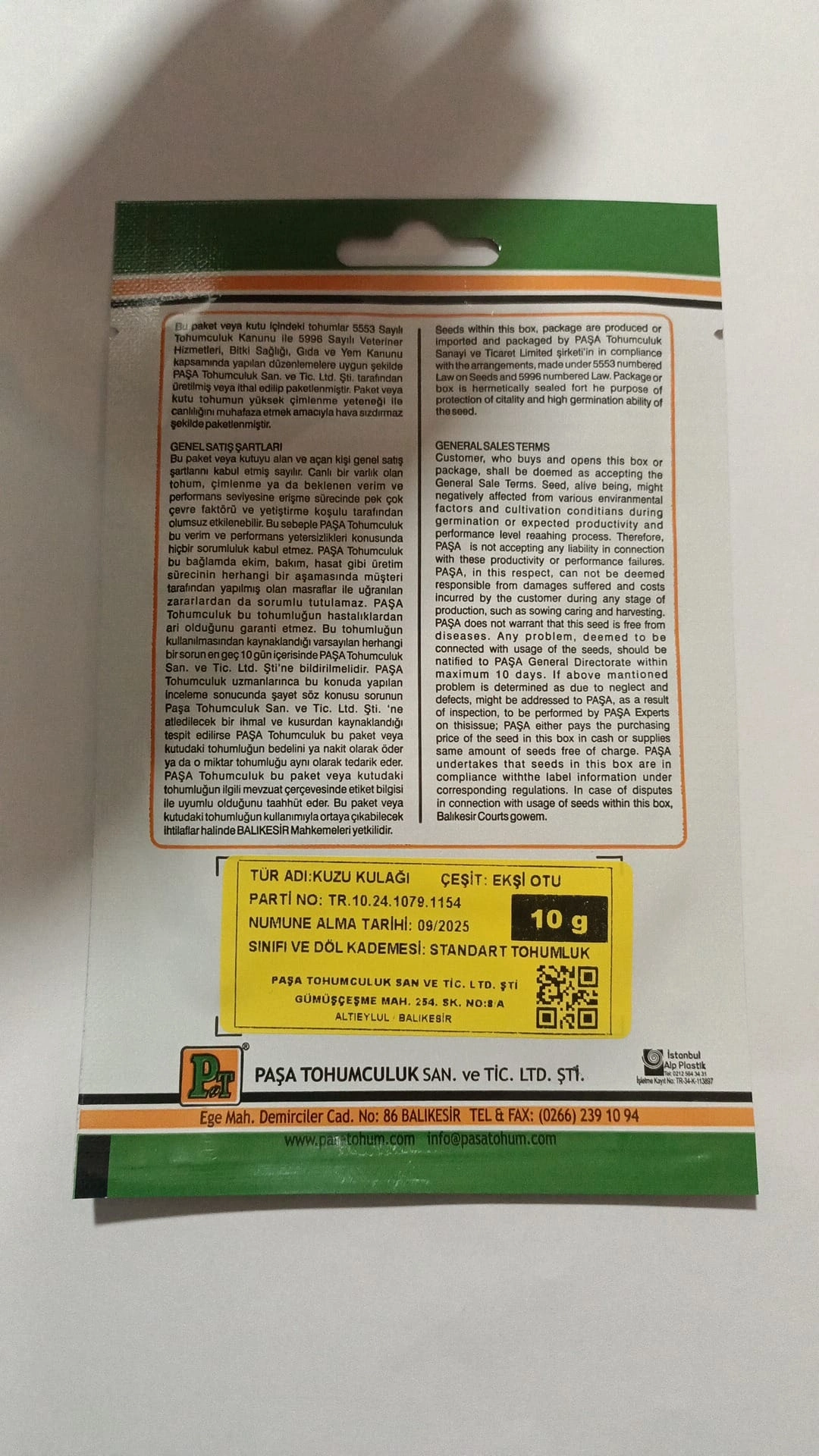 Kuzu Kulağı (Ekşi Otu) çeşidine ait üründür