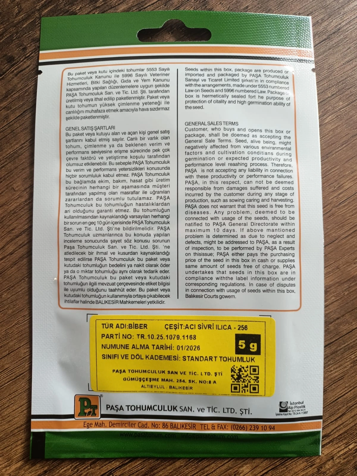 Paşa Tohumculuk Biber Tohumu Ilıca Acı Sivri 5 gr – Ürün Özellikleri