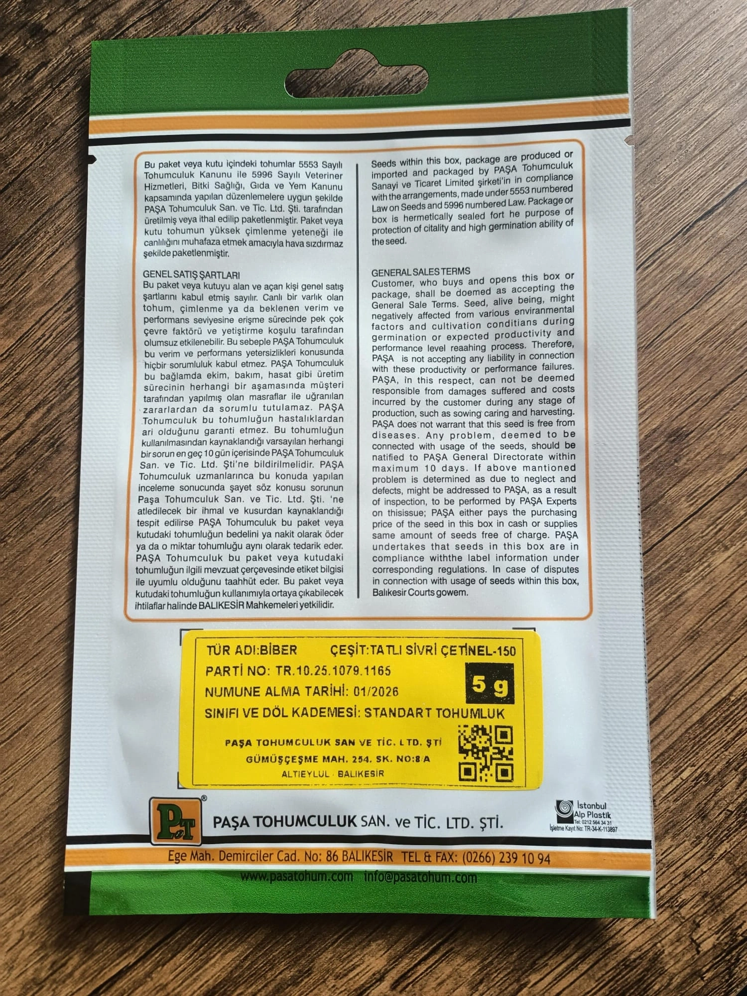 Paşa Tohumculuk Biber Tohumu Çetinel 5 gr – Ürün Özellikleri