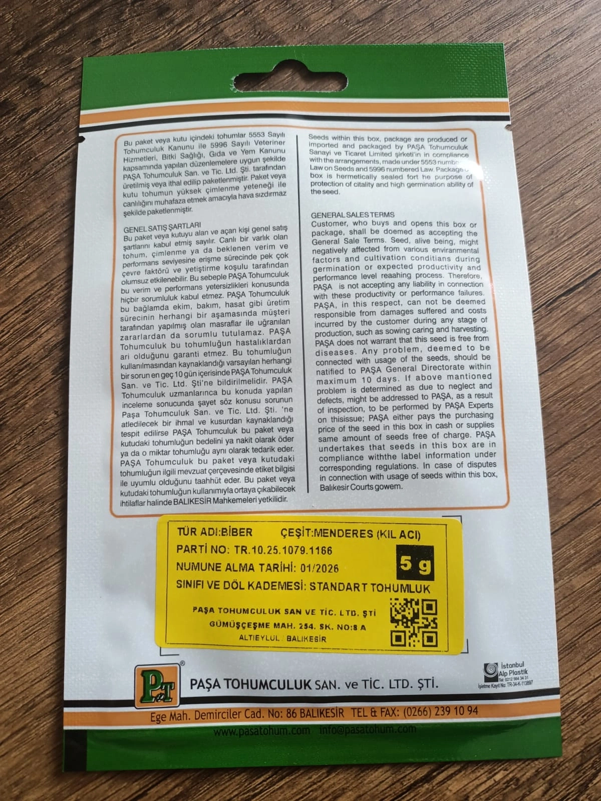 Paşa Tohumculuk Biber Tohumu Menderes Kıl Acı 5 gr – Ürün Özellikleri