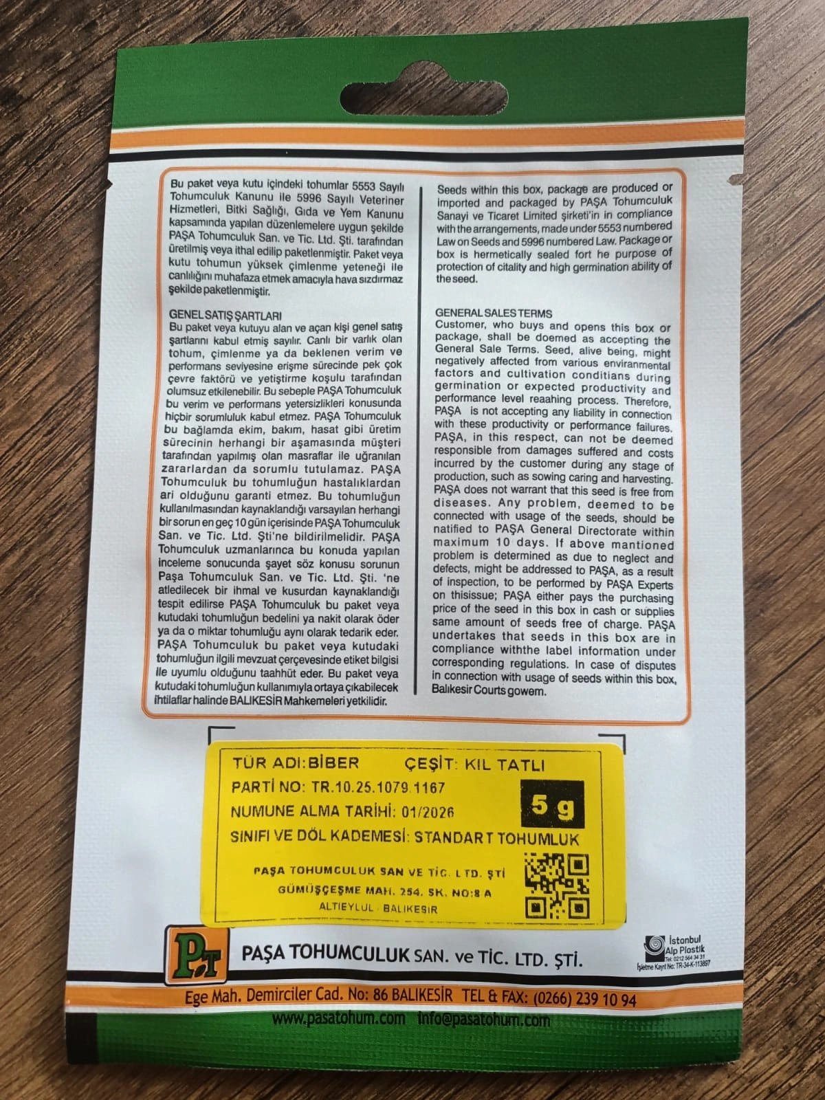 Paşa Tohumculuk Biber Tohumu Seyrek Kıl Tatlı 5 gr – Ürün Özellikleri