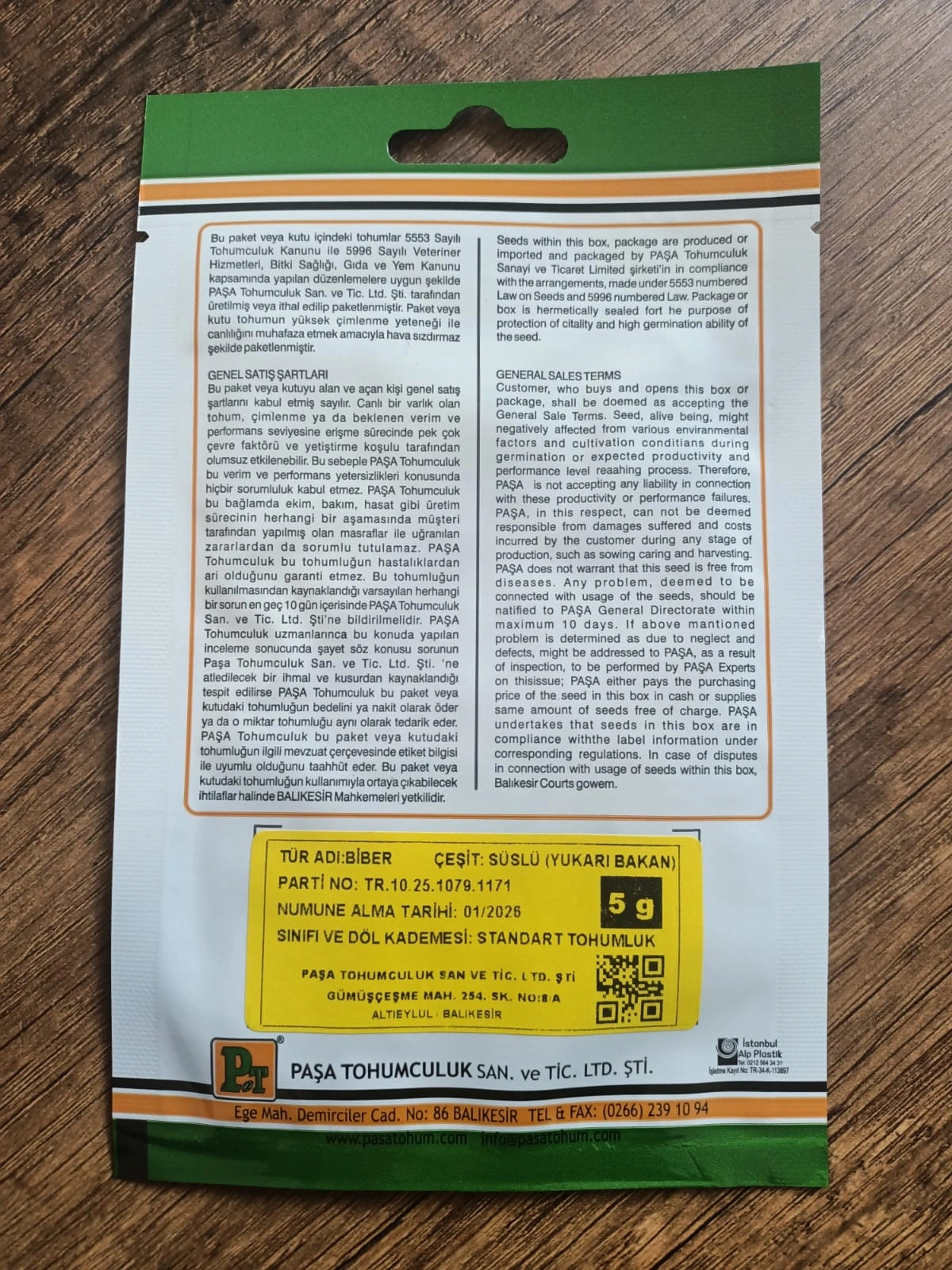 Paşa Tohumculuk Biber Tohumu Süslü 5 gr – Ürün Özellikleri