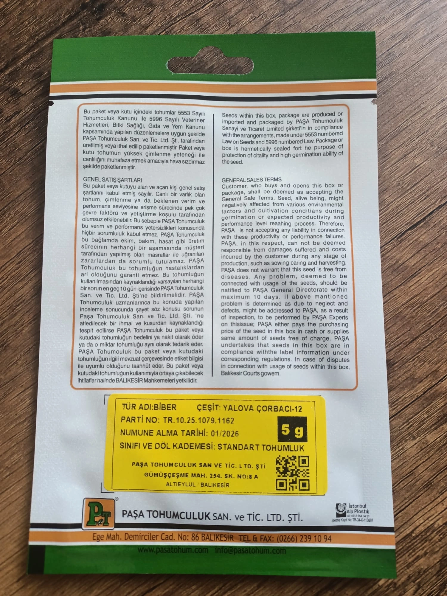 Paşa Tohumculuk Biber Tohumu Yalova Çorbacı Sarı Sivri 5 gr – Ürün Özellikleri