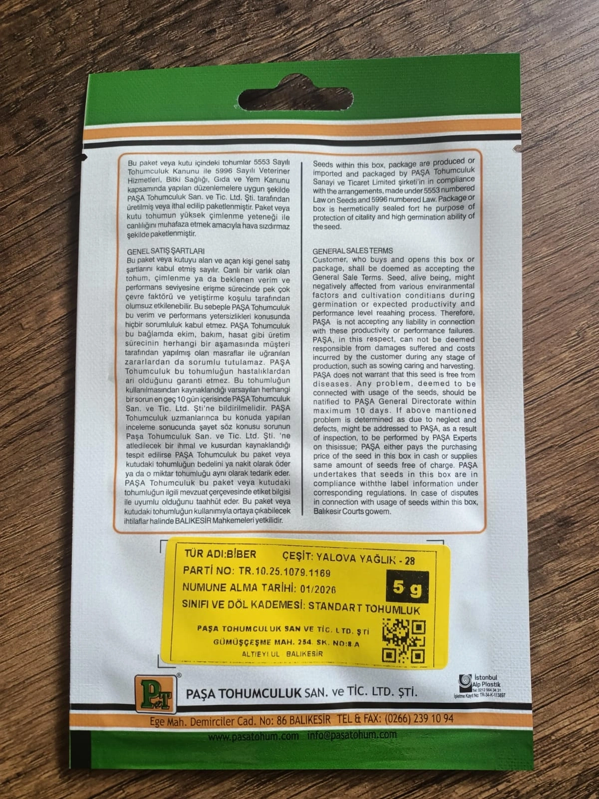 Paşa Tohumculuk Biber Tohumu Yalova Yağlık 5 gr – Ürün Özellikleri