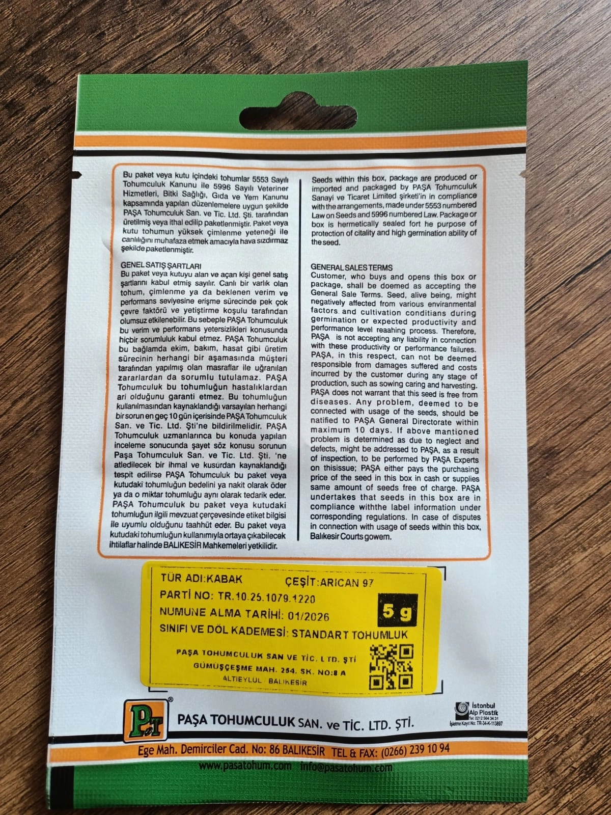 Kabak yetiştiriciliği için geliştirilmiş standart tohum çeşididir.