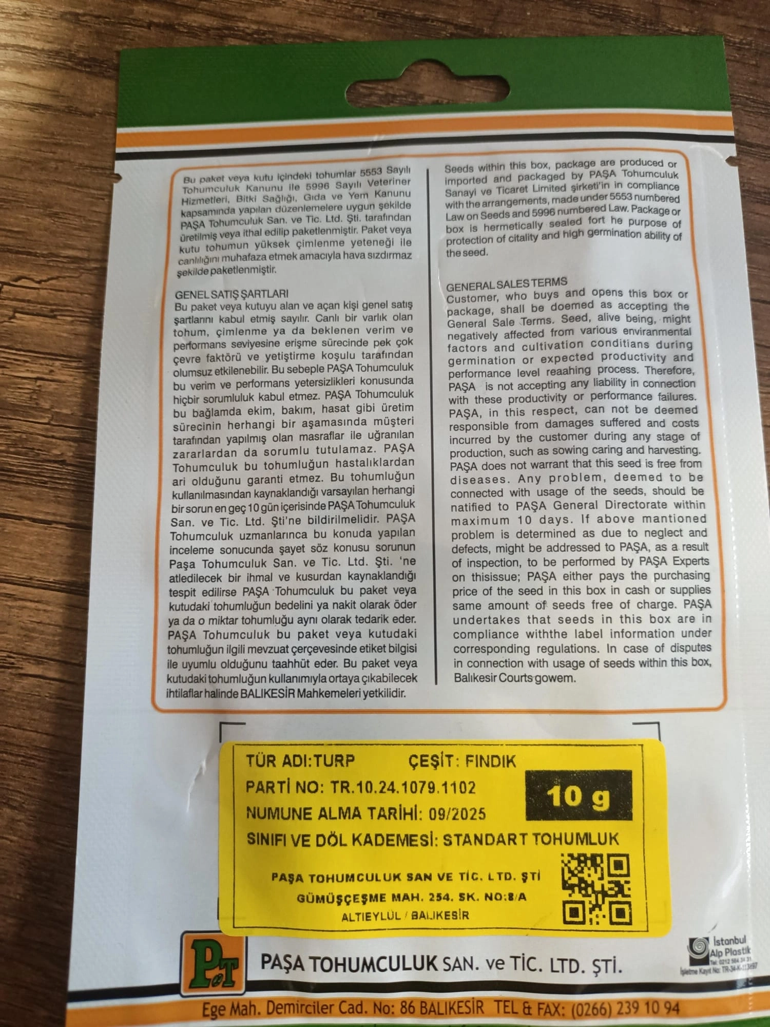 Turp 8 TR-17 (Fındık) çeşidine ait doğal üründür